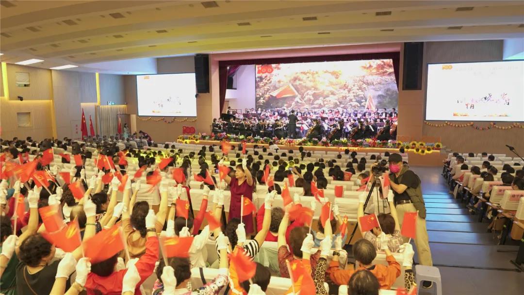 6月13日下午2点,由上海市建平教育集团、上海市建平中学主办的《奋斗百年路,启航新征程——庆祝中国共产党成立100周年大型交响音乐会》在建平中学大礼堂隆重举行。洋泾街道社区学校的200多名学员作为观众演员在观众区参与了现场表演互动。