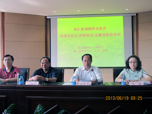 为了进一步推动社区(成人)教育的内涵式发展,提升终身教育工作者专业化水平,6月19日——21日,南汇新城镇社区(老年)学校举办了“2013年浦东新区南汇新城镇终身教育管理者队伍、师资队伍、志愿者队伍培训班”。开班典礼由镇社事办副主任朱蓉同志主持,镇党委委员、副镇长张校平同志作开班动员,社区学校副校长、老年学校校长施军介绍培训班具体安排和要求,区成教协会会长王林兴作了题为《学习型社会建设形势》的培训班首场报告。