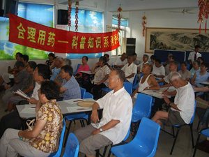 为进一步宣传、普及和提高居民的防病治病意识,享受健康快乐的生活,7月2日下午,花木街道培花四居委在居委活动室举办了合理用药、科普知识系列讲座,讲座特邀华氏连锁药业专职讲师吴老师主讲,50多位居民聆听了讲座。 吴老师采用多媒体讲授方式,从专业的医学理论知识,通过图片、数据和鲜活的事例,介绍了高血压的种类,特别讲解了高血压预防和不合理用药的危害性,并向居民们阐述了随着生活水平的提高,我国高血压人群呈增长态势,且成为最为常见的心血管疾病,预防和控制高血压已是居民健康生活的重要内容。吴老师细致地提出了合理化的建议:合理膳食、适量运动、戒烟限酒、心理平衡。还耐心解答了居民对高血压病的各种疑问,使居民学会自我保健。