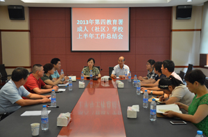 7月5日上午,第四教育署成人(社区)学校2013年上半年工作总结会在东明路街道社区学校召开。会上第四教育署职成教科负责人和各成人(社区)学校负责人参加了会议。会议回顾总结了上半年工作,并对各自学校下半年的工作进行了交流。会上,受邀专程前来参加会议的周家渡、上钢、周浦成人(社区)学校三位已退休的老校长和东明社区学校即将退休的校长也都在会上发言,他们纷纷表示虽然已退休和即将退休,但这辈子已与社区教育结下了不解之缘,仍然会一直关注和支持社区教育工作。
