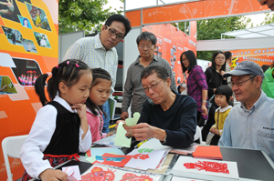 由成教协会精心制作的的展板、视频等内容,以及现场发放的《浦东民非教育》等宣传册、由浦南文化技艺进修学校师生演示的“撕纸、剪纸”纸艺互动项目,均受到与会领导的肯定和市民的欢迎。