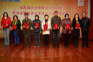 11月28日下午,金杨街道第九届全民终身学习活动周学习成果展示暨居委学习站点表彰会在建平实验中学举行,居民区书记、文教干部、展演团队及居民代表500余人共同参与。 展演伊始,街道党工委副书记王旭光作了热情洋溢的致辞,并表彰了2013年度8个先进居委学习站点和10个先进居委文教干部。随后,四个区块居委选拔的12个优秀文艺节目依次上演,为大家带来了一场视听盛宴。靓丽的服饰、饱满的精神、创新的节目,全面展示了居民终身学习的成果。难能可贵的是,展演当天恰逢天气骤变、温度剧降,团队学员们却依旧早早到场彩排,认真演练每一个动作,为展演做好了充分准备。演出过程中,每个节目都尽善尽美的展示着积极向上的精神、传递着对幸福美满生活的热情,别看他们都是古稀老年人,但抖擞的精神面貌一点也不亚于年轻人。 近2个小时的展演让大家意犹未尽、赞不绝口,不少居民区书记表示:感谢街道为居民们搭建了一个交流和展示的平台,让他们的学习成果得以在众人面前亮相。通过展示活动,也进一步激励了居民们的学习热情,引领大家积极投身于终身学习中,营造了良好的学习氛围,打造了金杨特色的文化教育品牌。