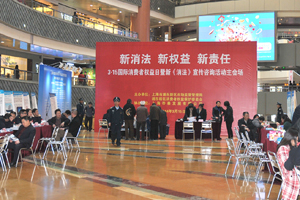 3月15日,由上海市浦东新区市场监督管理局、浦东新区消费者权益保护委员会主办的“新消法 新权益 新责任----3.15国际消费者权益日暨新《消法》宣传咨询活动”,在陆家嘴正大商业广场三楼黄金大道举行。浦东新区成教协会应邀参与了本次大型为民服务的维权咨询宣传活动。  活动期间,成教协会民非教育管理办公室的老师为前来咨询的市民进行了耐心解答,还现场向市民开展了教育培训的问卷调查,发放了“您的权益 我的责任——教育培训消费指南”宣传册。教育培训作为3.15主题咨询宣传活动内容之一,这在浦东新区乃至全市都是首次。