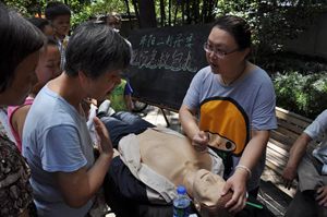 上钢新村社区街道济阳二村居民区教学点近期先后分三批举办红十字现场救护复训,共计有200名学员参加了本次复训。通过观看教学VCD和现场实际操作相结合的形式,使大家重温了现代救护新概念、心肺复苏术、包扎、止血、骨折固定的知识和操作方式方法。课上学员热情参与,课后大家依旧热情不减,纷纷表示回去后还会通过光盘反复学习,已备不时之需。