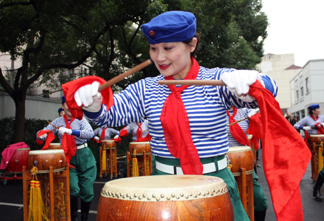 充满上海特色的南风扁鼓和海派秧歌不在舞台上展示,而改为台下轮番表演,为开幕式暖场,也为市民提供近距离学习的机会。  课程体验互动区分为“印象•国粹”、“活力•健身”、“魅力•生活”三个板块,由12门区级优秀课程及活动团队组成,现场参与开幕式的所有嘉宾与市民代表都能一起参与、一起体验。  在悠悠的古琴声中品茗挥墨、学习剪纸;在老师的指导下参与健身;在交流与互动中动手体验。一片其乐融融中,不仅体验到优秀课程的精华,学习互动后还可获得相应印章,于学习成果兑奖区兑换各类学习礼品。