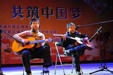 12月14日下午,上海浦东新区浦南文化技艺进修学校在三林杨思影剧院举行以“托起未来,共筑中国梦”为主题的2014年学员成果汇演,500多名学员和家长到场观看。