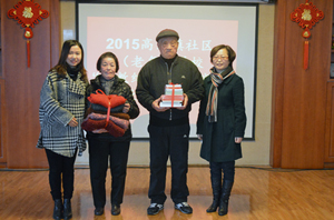 1月15日,高东镇社区(老年)学校部分学员来到高东镇敬老院,为老人们带去了“三送”:一送:举办了一场“2015高东镇社区(老年)学校“养教结合”慰问演出----暨教学成果展示”慰问演出。二送:送去了知识,老年版的《十万个为什么》;三送:在校领导的带领下一起编织了20条围巾,手指间的温暖思思沁入老人的心田。形体舞《我的祝福你听到了吗?》拉开了演出的序幕,陆续表演了木兰金银扇、太极功夫扇、越剧,歌曲等等,演出结束,老人们情不自禁的高唱《没有共产党就没有新中国》,把活动拉向高潮。