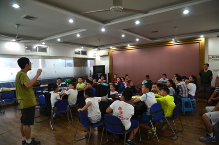 7月25日,由由八居委举办的第二季青少年英语沙龙活动正式与社区内的小朋友们见面了。一早,陆陆续续就有家长带着孩子到居委报道。近四十名小朋友,安排成小组,开展趣味英语游戏。内容涉及简单的小组破冰、美元认知、面额计算、模拟购物等环节。小朋友动手又动口,在轻松的氛围中,通过游戏的形式,学习了新知识,锻炼了口语能力,结识了新伙伴。 最后,每位小朋友还得到了一份学习用品以示鼓励。 毕业于英语专业的宣教干事,曾经在高中做过任课老师,对于青少年心理和激发孩子外语兴趣有一定研究。本着服务社区的理念,利用业余时间,他为此次活动备了二十余小时的课;并动员社区内外籍英语老师William为其出谋划策,引入培训机构教学及活动内容。 为了丰富青少年暑期生活,由由八居委早在2014年便推出了青少年趣味英语沙龙第一季活动,受到社区青少年的欢迎和喜爱。因此,为了把活动办得更好、更加精彩并成为由由八居委乃至分社区的特色活动,由由八居委社区干事可谓动足了脑筋。