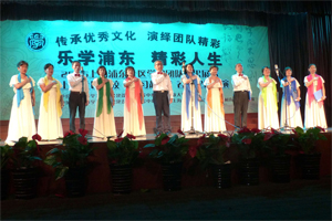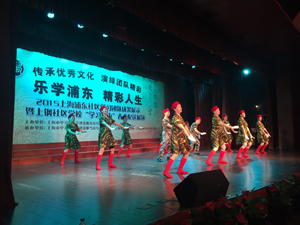 8月4日下午,在上钢社区文化活动中心举行的“乐学浦东,精彩人生”——2015上海浦东社区学习团队成果展示暨上钢社区学校“学习超市”春季配送展演,吸引众多社区居民前来观看。 38度的高温天气丝毫未影响居民们的欢乐与热情,375座的演出大厅座无虚席,虽然临时增加了30个座位,还是有很多居民只能席地而坐。19个居民区学习团队选送的合唱、排舞、广场舞、朗诵、沪剧等节目,得到了居民们的热烈掌声。展演队伍突破了以往阿姨妈妈们的一统天下,甚至连舞蹈类节目中也出现了爷叔们的身影。越来越多的生面孔的参演,充分体现了学习团队的吸引力和生机活力。近年来,上钢社区将文化、教育课程配送工作统一纳入社区学校的“学习超市”教育资源服务项目中,仅今年春季,就向23个居民区配送了78个课程,参与学员近33400人次,收到了非常好的服务效果。