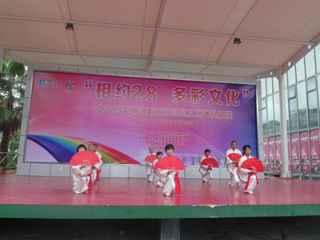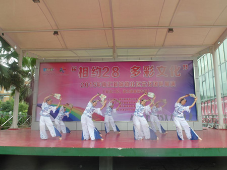 借庆祖国华诞之契机,由南汇新城镇文化中心主办、宜浩佳园二居委与滴水湖馨苑居委会筹建组共同承办的“相约28 多彩文化”社区文艺展演活动在东岸涟城广场举行。 由宜浩佳园二居委编排的舞蹈《我们的钓鱼岛》拉开了整场演出的序幕,慷慨激昂的表演表达了社区居民强烈的爱国情怀,接着,独唱、小组唱、舞蹈、二胡演奏、诗朗诵、时装表演、太极乾隆扇等一个个由居民自创自演的节目纷纷登场;《祖国慈祥的母亲》、《我爱你,中国》,表达了对祖国炽热的爱国主义情感;老年人时装表演反映了社区老年人充满精气神的蓬勃面貌,整个演出在充满江南水乡风情的舞蹈《花月》中落下帷幕,演员们的表演赢得了大家最衷心的掌声与好评。 此次“相约28 多彩文化”社区文艺展演活动是宜浩佳园二居委群众文艺工作的一个展示平台,既丰富了社区居民的业余文化生活,又有助于推动社区各项工作的开展。