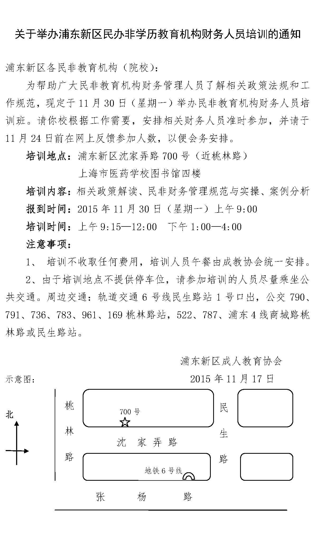 关于举办浦东新区民办非学历教育机构财务人员培训的通知