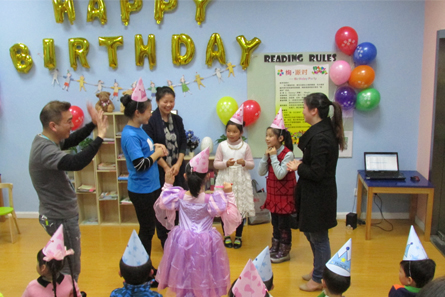 “绚·生日派对”由家长、学生及老师共同参与、策划完成。家长们都为孩子精心准备了生日蛋糕、酸奶、水果,并早早地来到了学校。派对在全英语的环境下进行,安排了游戏、自助餐、唱生日歌、许愿、吃蛋糕等环节,让与会的学生和家长充分感受到了国外举办派对的氛围,增强了学生、师生及家长之间的情感,也提高了孩子们对英语学习的兴趣。