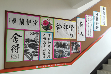 为了进一步增进学校学习氛围,美化校园环境,同时为学员提供更多展现学习成果的平台,学校在北大楼开辟了一块成果展示专栏。目前,在学员的积极响应下,装裱的近30副书法、国画作品一一被学员们张贴展示。