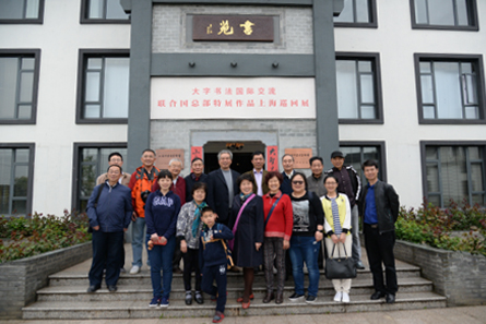 接下来,一行人参观了大字书法国际交流联合国总部特展作品上海巡回展,欣赏了书院社区爱好者、书法家、联合国官员写的书法,并参观了叶新文学馆。