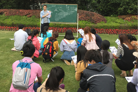 5月22日下午,上海开放大学浦东东校英语专业在川沙校区校园大草坪上组织举办了一场以“环游世界”为主题的学生英语角活动,来自学校英语专业和其它专业的数十名学生参与了本次活动,英国外教Chris老师应邀主持英语角活动。