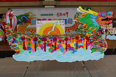 此次活动以学校为单位,每个学校负责装点一艘空白的龙舟。大家纷纷发挥创意,画画、剪贴、披挂饰物、挥毫泼墨,将白胚的龙舟装点得五彩缤纷,神气活现。