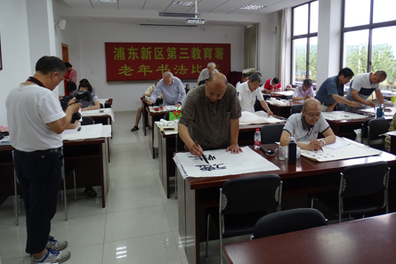 本次比赛吸引了潍坊、花木、张江、川沙、六灶、祝桥、新场7个街镇20多位老年朋友的积极参与,他们最年轻的50岁,最年长的78岁,参赛作品为当场书写,不限字体,不限大小,不限内容(只要健康向上)。比赛现场,老年朋友根据自己的爱好不同,握着大小粗细不一的毛笔,书写出一幅幅耐人寻味的词句,浓厚的书香气氛弥漫着整个教室,字体或端庄肃穆,或古拙雄浑。或清秀飘逸。其中10副作品获得了优秀奖。