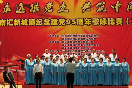 为纪念中国共产党成立95周年, 弘扬党的优良传统, 讴歌党的丰功伟绩和伟大成就, 6月28日下午,南汇新城镇宜浩佳园一居民区党支部组织居民参加了由南汇新城镇委员会、南汇新城镇人民政府主办的“永远跟党走·共筑中国梦”为主题的歌咏比赛决赛。