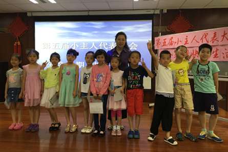 最后,也是同学们最期待的环节之一,选出辖区内青少年的“小主人代表”,大家有的毛遂自荐、有的积极推选他人,共计11名小朋友上台一一作了自我介绍,并表示有信心配合好居委老师、做好小朋友活动的组织和服务工作。