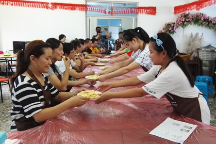 活动开始前,村妇联主席先向大家介绍了活动流程,接着在烘培老师的指导下,家长和孩子们按照操作步骤制作形态各异的动物饼干和曲奇饼干。经过两个多小时的制作一盘盘芳香四溢的饼干出炉了,孩子们将亲手制作的饼干捧给爸爸妈妈先品尝,感谢爸爸妈妈的爱。