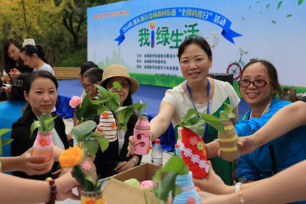 最后是爱体验”绿生活”。这是本次活动人气最高的环节,大家现场体验“芽菜”和“变废为宝”两个环保项目。小小的麦子经过7-8天的时间,就能长成可以食用的芽菜;废弃的牛奶瓶经过巧手装饰,变身成美丽的花瓶。充分体现了中华民族物资循环利用、惜物不浪费的优秀传统。