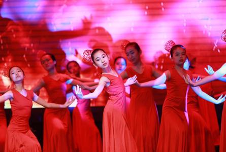 其二是民族的意韵和亮丽。每次汇演,时代艺校的师生都会以中国的民族与民俗的优良传统文化、文明为基调,新创作出多个极富中华故国意蕴和情韵的亮丽节目。