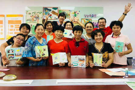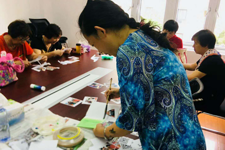 在老师的示范下,先用水粉颜料晕染打底,贴上过往精彩照片。从图片挑选,剪贴到文字撰写,每一步都是学员们自己的创意。口袋书的制作结合了美术班多重艺术手法,如剪、贴、画、折纸等等。学员们折的小蝴蝶形象生动的“飞”到了我们口袋书中。当学员们自己写下心得时,不仅感叹时光荏苒,美好的记忆跃然而出,每一份感动如此深刻。每一件作品都有学员们的努力和成长。