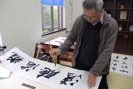 在学校宣布比赛规则后,参赛选手们就聚精会神的开始提笔书写。一时间,会场内墨香四溢,选手们一个个满怀激情,用心书写每一个笔画、每一个汉字,映衬出学员们高涨的学习热情。学员中年龄最大的学员都已年过八十,仍旧精神矍铄,下笔有神。学员根据自己的爱好,有的书写古朴平实的隶书,有的书写行云流水的行书,有的书写端庄的楷书…… 一幅幅的作品凝聚着他们心血。