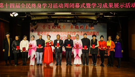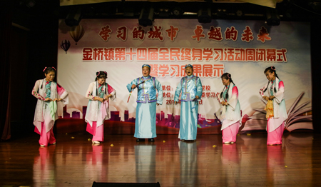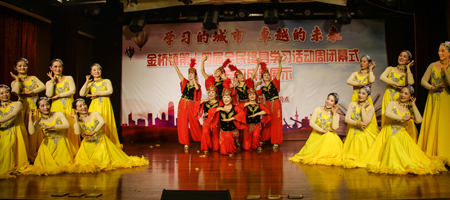 今年是金桥镇社区学校举办全民终身学习活动周的第十四个年头,金桥镇终身教育工作者们这十四年的坚持与付出使得终身学习理念逐渐深入人心,活动周更是成为学员们的一个盛大节日。本届活动周期间,社区学校与各居(村)办学点不断创新活动形式,丰富学习内容,开展了许多深受社区居民与学员喜爱的活动。活动周期间共开展活动141项,29410人次参加了书画展、知识竞赛、巡展等各类活动。 闭幕式上,吉紫茵副镇长宣读了金桥镇社区学校优秀学员颁奖决定,并为他们颁奖。展演活动则围绕活动周主题“学习的城市 卓越的未来”展开,来自2018年秋季公益班的各个班级及“送教上门”各居(村)学习点的学员代表们带来了一场视听盛宴。从书画教室到舞蹈房、从剪纸教室到电脑房,金桥镇社区(老年)学校的学员们身体力行得向大家展示“活到老、学到老”的学习理念。精彩绝伦的节目展演满载了社区居民与学员们的累累硕果。