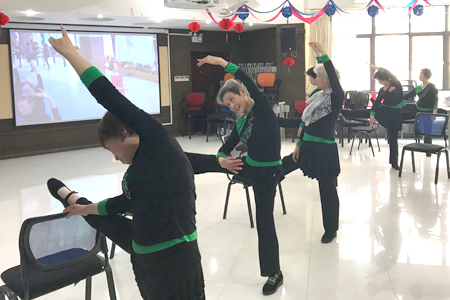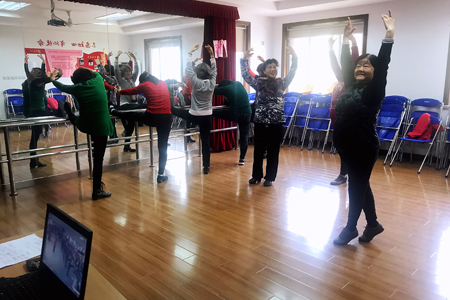 本次直播展示,羽洋、海防、山水国际、泾东等居委学习点也组织居民通过洋泾社区学习港远程收看,居民们随着屏幕中的音乐及老师的示范动作,翩翩起舞,享受学习的魅力。