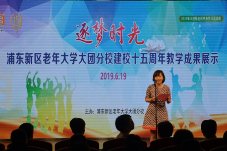 (本站发表日期:2019-6-28) 6月19日下午,浦东新区老年大学大团分校在大团镇文化中心举办了建校十五周年教学成果展示活动。区老龄事业发展中心(老年大学)、大团镇党委政府等有关领导、以及各兄弟街镇的老年学校校长、任课教师和学员代表等共400多人参加了此次展示活动。