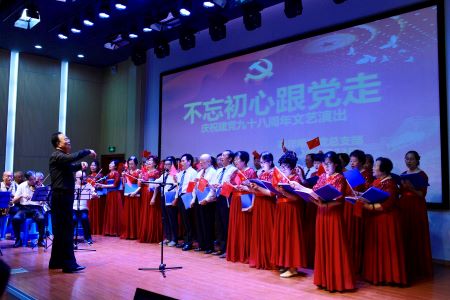 (本站发表日期:2019-7-2) “七一”来临之际,联洋第二居民区党总支部在进才实验中学三楼礼堂举办了主题为“不忘初心跟党走”庆祝建党九十八周年文艺演出,辖区五个党小组、文体团队等共计180余名党员、群众参加演出。