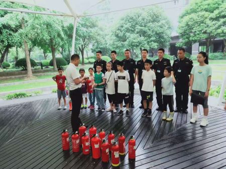 (本站发表日期:2019-7-29) 为了让青少年学生提高消防安全知识,增强自救常识,近日,联洋四居委组织20名学生及家长共同参与社区开展的暑期消防演习活动。社区朱老师邀请了水清保安队来给参加活动的学生们讲授消防演习并辅导实操。 雨天也抹不掉学生的热情,学生们都早早的来到白帆广场,秩序井然。活动分为两个部分:第一部分,保安队长为学生们简要而又系统的讲解了消防相关知识,并与学生积极互动;第二部分,重点讲解了灭火器的使用方法,并进行了模拟火场现场干粉灭火器的实际规范操作演习,每个孩子都十分认真的拿起灭火器实际操作,有序认真是孩子们的真实表现。演习完毕后孩子们列队向今天培训的保安叔叔鞠躬致谢,活动顺利完成。 通过这次消防演练活动,增强了孩子们的安全防范意识和灭火逃生能力,有效预防和减少火灾事故的发生。并获得了学生与家长的一致好评。