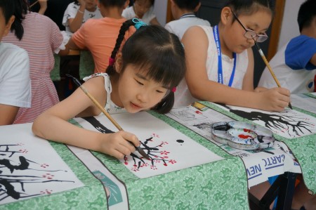 (本站发表日期:2019-8-12) 8月1日上午9:00,中邦居民区为孩子们开展了生动有趣的暑期活动。 本次活动我们邀请了奥坦艺术中心的泰迪老师和雪儿老师来为学生们上课,这节课的内容是国画,是中国传统作品。但今天的国画不简单呢,不但要用毛笔,还要用嘴吹,也就是吹画,孩子们更是提起兴趣,踊跃积极,并且还能拿到精美的小礼物,学生们很是很兴奋。老师先为学生们演示了绘画过程,用毛毛在画纸上先画出树杆,再把墨汁点到树杆的结点用嘴吹出各种造型的树枝,最后用红色颜料画出梅花。在老师的带领下,孩子们迫不及待的画了起来,别看年龄不大,但一个个聚精会神,拿笔的姿势都有模有样的,连步骤都牢记心中,蘸墨、落笔,一步一步让自己的作品呈现的格外精致。 这次活动使孩子们体验了中国艺术之美,学习了国画基本构图、笔法、用墨方法,孩子们太厉害了!