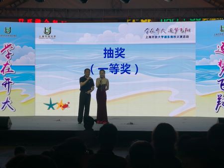 (本站发表日期:2019-8-23)        近日,上海开放大学浦东南校“学在开大逐梦飞翔”义演活动在浦东新区惠南镇乐源城名品街广场举行,本次活动由上海开放大学主办,上海开放大学浦东南校承办。出席本次活动的领导有上海开放大学教务处处长薛伟、招生办公室主任史承军、上海开放大学浦东南校校长汤明飞、书记倪美华。晚会历时两个小时,开大浦东南校全体教职工和学生代表们全程参加活动。