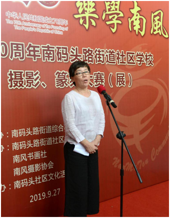 9月27日下午,为庆祝中华人民共和国成立70周年,南码头路街道综合事务办、南码头路街道社区学校和上海市五星学习团队南风书画社、南风摄影协会联合举办“喜迎华诞•乐学南风”——庆祝新中国成立70周年南码头路街道社区学校美术、书法、摄影、篆刻艺术作品大赛(展)。新区社区学院院长毕虎、副院长蔡瑾,南码头路街道党工委委员、办事处副主任李爱武,新区社区学院社区教育中心主任吴松等领导及获奖嘉宾出席活动。