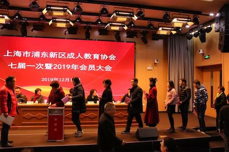 2019年12月19日下午,浦东新区成人教育协会七届一次暨2019年会员大会在浦东新区社区学院会议厅举行。浦东新区成教协会会员和第六届理事会副会长朱达轩、朱伯官、副秘书长毛埃凡等140多人参加了大会,浦东新区教育局高中(职业)与终身教育处副处长傅红、浦东新区民政局社团处分管干部余峰也应邀出席。   会员大会由副会长毕虎主持。大会听取并审议通过了张萍会长所作的《关于第六届理事会工作报告》、王志刚监事长所作的《关于第六届监事会工作报告》、王建明秘书长所作的《关于第六届理事会财务收支情况报告》、朱达轩副会长报告的《关于<章程>修订的意见》、吴锦帆副会长所作的《浦东新区成教协会换届选举工作情况报告》、朱伯官副会长报告的《浦东新区成教协会关于理事、监事等选举办法》。   随后,副秘书长毛埃凡通报了关于换届选举监票人、唱票人、记票人名单及产生情况说明,并由副会长吴锦帆介绍了第七届理事会理事候选人和监事会监事候选人的情况。大会以无记名投票表决的方式,选举产生了浦东新区成人教育协会第七届理事会和监事会。大会以热烈的掌声对新当选的理事和监事表示祝贺,同时对已卸任的理事和监事为协会做出的努力和贡献表示衷心的感谢。   大会休会期间,第七届理事会举行了第一次全体会议,并以无记名投票表决的方式,选举产生了第七届理事会常务理事、秘书长、副会长、会长。新一届监事会也召开了第一次监事会议,并投票选举出第七届监事会监事长。在之后进行的会员大会上,新当选的副会长罗峻代表理事会宣读了《第七届理事会第一次全体会议决议》。大会以举手表决的方式,一致通过了新当选的副会长刘剑宣读的《浦东新区成人教育协会七届一次暨2019年会员大会决议》。