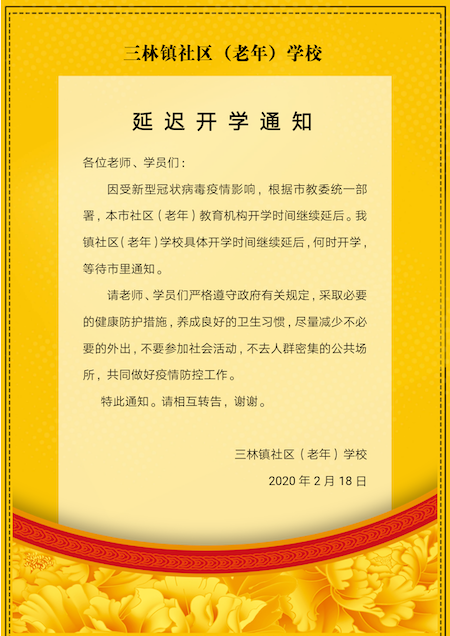 一场突如其来的新冠肺炎疫情,给我们的生活按下了“暂停键”。根据市教委部署,学校开学时间继续延后,三林镇成人学校的老师和学员们虽然不能集中上课,但是学教工作却没有放下过。学校及时发布“告知书”“延期开学通知””等,指导和发动师生通过网上学、微信教,把宅家的时间丰富起来;向师生发放“疫情防控倡议书”,倡导人人参与到这场没有硝烟的战斗中去。师生们一颗颗心也始终牵挂抗“疫”前线的逆行者们,他们以自己行为参与志愿服务,参与到疫情防控阻击战中,用自己的方式助力战“疫”,为疫情防控保障出力、为抗疫鼓舞士气传递真情。