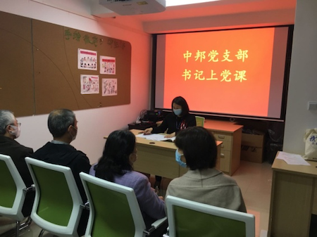2020年4月21日上午,中邦居民区党支部召开了以“坚定信念 牢记使命 勇担重任”为主题的党支部书记上党课活动。 讲课中,党支部书记秦谊主要以进一步强化党员干部的理想信念为重要讲课内容,联系自身社区党支部工作,以及近期的社区疫情防控工作,围绕以下几个方面与大家进行了探讨交流,一是群众路线就是党的基本路线。二是严于律己提升反腐倡廉能力。三是坚决维护党章的权威性和严肃性,学习党章、遵守党章、贯彻党章、维护党章。四是牢固树立正确的权力观,把严以用权作为为官从政的基本标尺。五是充分发挥社区党员主观能动性及先锋模范作用。