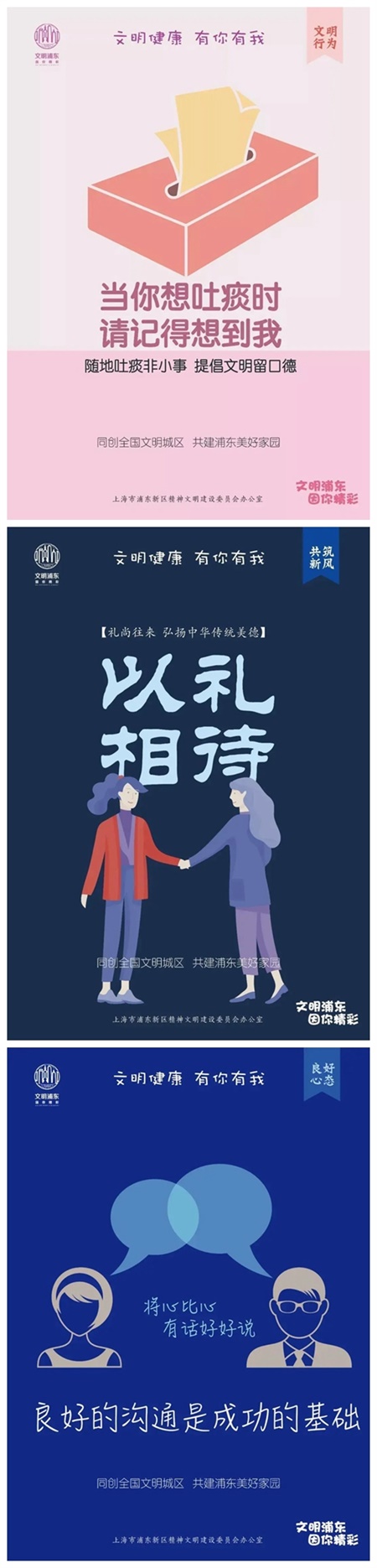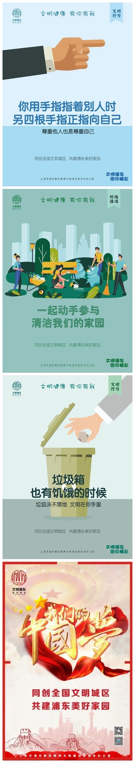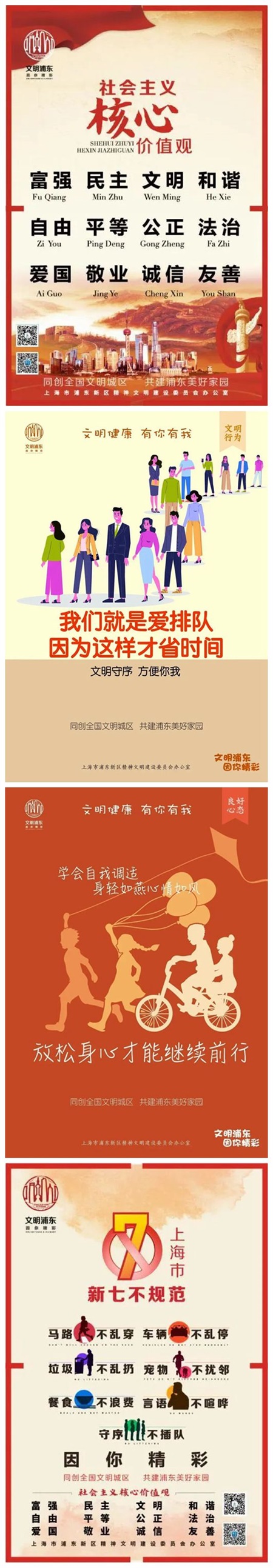 让文明常在脚下  文明行路,不乱穿马路、不闯红灯,不翻越交通护栏,自觉排队候车、有序上下车,不拥挤、争抢座位,主动为老、弱、病、残、孕及怀抱婴儿者让座;文明驾驶,不乱停车、乱抢道,非机动车按道骑行,机动车让行斑马线,不接打电话,不向窗外抛物,酒后不驾车;多走路少开车,倡导文明绿色出行;积极参加社会志愿服务和各类公益活动。 文明城区,你我共建;文明城区,你我共享。让我们携起手来,凝心聚力,践行文明,传播文明,浦东文明将因您的参与、支持、奋斗而更加精彩!浦东再出发,文明我先行!