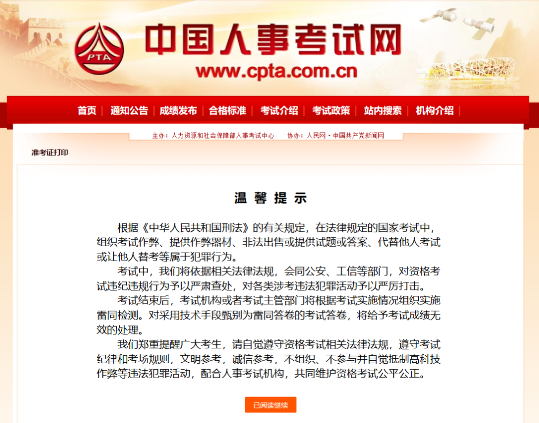 打印准考证流程: ①登录中国人事考试网,点击【打印准考证】👇