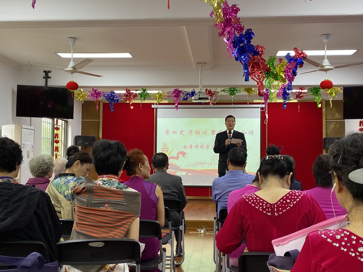 10月16日上午,牡丹侨之家60多位侨眷和各居委统战干事在社区管理中心演出厅欢聚一堂,隆重举办“学四史,守初心,聚侨力,筑和谐"文艺汇演,文艺会演节目丰富多彩,舞蹈、走秀、京剧、合唱,形式多样,现场气氛非常热烈。