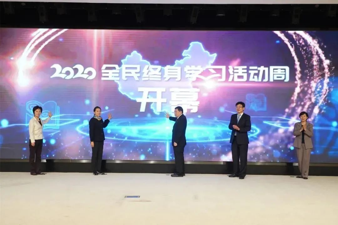 领导嘉宾为2020年全民终身学习活动周启幕 今年活动周在疫情防控和经济社会发展“双线作战”形势下,各地广泛开展形式多样的学习活动。组织有条件的普通高校、职业院校、开放大学、成人学校、社区学校、老年大学、科普学校和其他社会教育机构广泛开展线上线下相结合的讲座、培训、观摩、座谈等多种形式教育培训、学习宣传活动、文化艺术活动和学习服务。充分发挥图书馆、科技馆、文化馆、博物馆等公共文化服务机构的社会教育功能,满足人民群众的多样化学习需求。积极推动贫困地区、西部地区、民族地区继续教育资源建设和共享力度,以全民终身学习的生动实践服务“教育强国”的国家战略。 活动周全国总开幕式11月1日在上海市复旦大学举办。教育部职业教育与成人教育司、中国联合国教科文组织全委会秘书处、中国成人教育协会、国家开放大学、上海市人民政府、上海市教育委员会、复旦大学等有关单位领导出席了总开幕式,上海、江苏、浙江、安徽长三角终身教育工作者代表参会。联合国教科文组织终身学习研究所所长 David远程致辞。 复旦大学上海医学院副院长、中国-WHO新冠肺炎疫情联合专家考察组成员吴凡作主题报告。活动周推荐认定了155位“百姓学习之星”和159个“终身学习品牌项目”,广泛宣传展示学习典型在抗击疫情、脱贫攻坚、全面建成小康社会中的作用、特色和亮点。