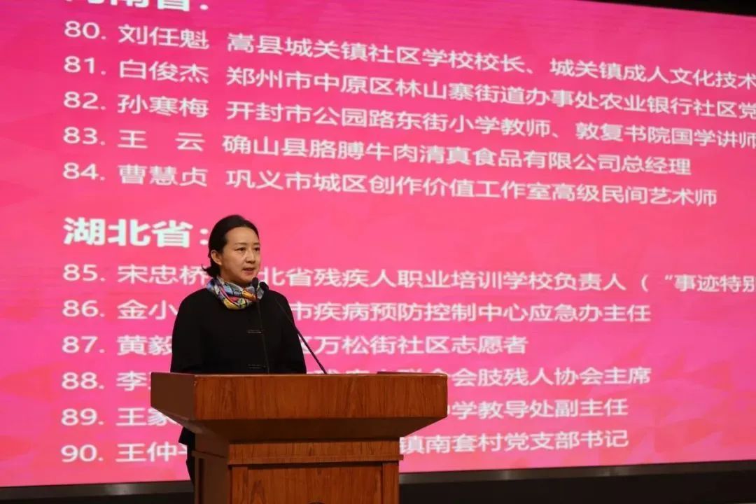 中国联合国教科文组织全国委员会秘书处副秘书长崔莹宣读2020年全国“终身学习品牌项目”和2020年全国“百姓学习之星”表扬名单 总开幕式在各省、自治区、直辖市教育厅(教委)、计划单列市教育局及新疆生产建设兵团教育局设立了36个分会场,分管继续教育工作的负责人、相关处室负责人、分会场所在城市社区(老年)教育工作者、“百姓学习之星”“终身学习品牌项目”等代表通过视频会议参会。截至11月1日中午12点,上海主会场和各地分会场共有1500余位代表参加,组织收看达到近2.6万人次,网络视频浏览量达到20多万人次。