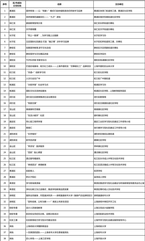 在新时代背景下,如何构建一条“全民学习 泛在可及”的终身学习之路?10月31日,“2020年上海市第十六届全民终身学习活动周”开幕式暨“新时代全民终身学习路径”研讨会在复旦大学召开。 开幕式由上海市学习型社会建设与终身教育促进委员会办公室、上海市成人教育协会主办,复旦大学承办。上海教育委员会副主任倪闽景出席活动并讲话,复旦大学党委副书记金海燕致辞。上海市成人教育协会会长、上海开放大学校长袁雯,上海市总工会副主席桂晓燕,同济大学党委副书记徐建平,中国银行上海市分行副行长王琛等出席活动。活动由上海市教育委员会终身教育处处长苏铁主持。 上海市教委、市文明办、市总工会、市学指办、市教科院、上海终身教育研究院、市成协、市老年教育工作小组办公室,以及上海16个区教育局相关负责人参加了本次活动。 本次活动以“全民学习 泛在可及——新时代全民终身学习路径”为研讨主题,邀请四位主题发言人从四个不同视角全景展现新时代的全民终身学习路径。上海市精神文明建设委员办公室活动指导处副处长洪菲菲通过分享《城市涵养人文内涵,文化滋养城市情感》,描绘了一幅上海市民人人“随时可学、随时能学、随时愿学”的图景。 复旦大学党委宣传部常务副部长、教师工作部部长陈玉刚的主题发言《服务终身学习,建设教育强国》,详细介绍了复旦大学服务终身学习的理念与实践。 静安区教育局局长陈宇卿分享了《静安:全民终身学习“路路通”》,由“近远皆宜”四个字一一展开,阐释了静安的全民学习理念。 上海市成人教育协会院校教育专业委员会主任陈巍以《协同创新 五措并举 赋能新时代社区教育》为题,介绍了高校赋能社区教育发展,推进全民终身学习的思考和实践。 当天活动表彰了上海市2020年“百姓学习之星”和“终身学习品牌项目”。上海市成人教育协会会长、上海开放大学校长袁雯为获得上海市2020年“百姓学习之星”荣誉称号的代表颁奖,上海市总工会副主席桂晓燕和中国银行上海市分行副行长王琛共同为上海市2020年“终身学习品牌项目”荣誉称号的单位代表颁奖。 活动中还举行了上海市全民终身学习活动周第十六届、第十七届承办单位流动杯交接仪式,同济大学党委副书记徐建平从复旦大学党委副书记金海燕手中接过了流动杯。2021年上海市全民终身学习活动周开幕式将由同济大学承办。 上海市教委副主任倪闽景在研讨会上指出,上海终身教育领域正着力推进四项工作:一是凝聚巩固终身学习的社会共识;二是建立健全开放融合的终身教育体系;三是优化完善普惠友好的终身学习环境;四是倡导形成崇尚卓越的终身学习品质。面对即将到来的“十四五”发展时期,他提出终身教育要从三方面着力;一是提高认识、站高望远,高起点谋划上海终身教育与全民终身学习;二是顺时应势、勿失良机,构建起新时代全民终身学习路径新样态;三是谋新谋变、破局而出,使上海市全民终身学习活动周迈入一个崭新的发展时期。 本届上海市全民终身学习活动周紧扣“全民学习 泛在可及”主题,突出线上线下教育和学习,既有学习赛事,也有主题论坛、展示活动等等,丰富多彩的内容会一直持续到12月底,为上海市民的终身学习提供多样化的平台和内容以供选择。 上海市2020年“百姓学习之星”名单 (排名不分先后) 上海市2020年“百姓学习之星”名单 (排名不分先后) 上海市2020年“终身学习品牌项目”名单 (排名不分先后)