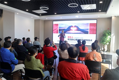 一场“老年人常见的心理健康问题及辅导技术”的专题讲座一开场就深深的吸引了大家,讲座由正能教育的宋成锐博士主讲。宋博士组织大家进行心理互动小游戏,让大家在游戏中感受心理规律的运用。讲座中,宋博士通过讲授、角色扮演、案例分析等手段,结合老年人心理发展趋势和心理健康存在的主要问题,对与老年情感交流、心理健康、家属支持等方面提出科学的行之有效的应对建议。