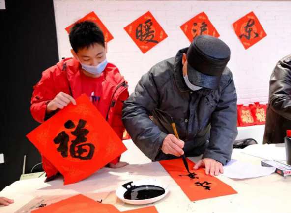 春节期间,一场“情暖沪东·亭有爱”的文化展示活动正在居民区共享生活空间内热闹开展,把社区教育的成果融入社区治理,让“留沪人”感受到社区大家庭的温暖。 根据春节传统特色,沪东新村街道社区学校把烹饪、剪纸和书法老师请到了现场,教大家现场写福字、包水饺、剪窗花。 在暖亭一楼,书法老师帮助大家写出一幅幅漂亮的福字和对联,大家在一起切磋书法,为暖亭增添了些许文学气息。 在暖亭二楼,社区的阿姨妈妈们也加入了包饺子的队伍,大家一起和馅、煮饺子,其乐融融。一旁留沪人员子女在剪纸老师的悉心指导下,用剪刀剪出一张张新春的模样。 “爹妈正担心大年夜吃点啥,你瞅瞅,这还担心啥呢?”一手端着热气腾腾的饺子,一手提着墨迹未干的“福”字,来自黑龙江海伦市扎音河乡的刘雪琴喜气洋洋,虽然没吃到家乡酸菜馅的水饺,却尝到了街坊邻居一起做的荠菜本地大水饺。 在家门口享受到暖暖春意的,不仅仅是刘雪琴一个人。据居民区党总支书记介绍,居民区内有479户外来租户,共计865名外来人员,今年留在上海过年的就有747人。