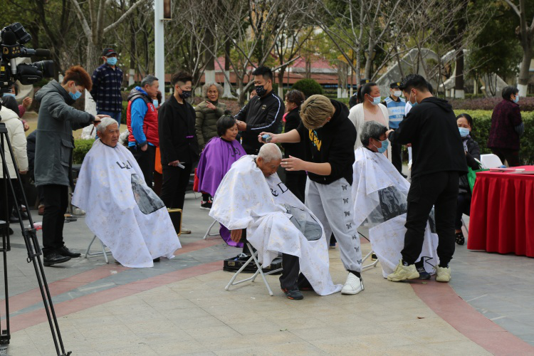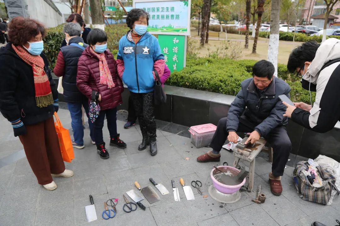 活动现场有三十余项公益服务,很是热闹。志愿者为现场居民送上了理发、磨刀、金融咨询等各类便民服务。