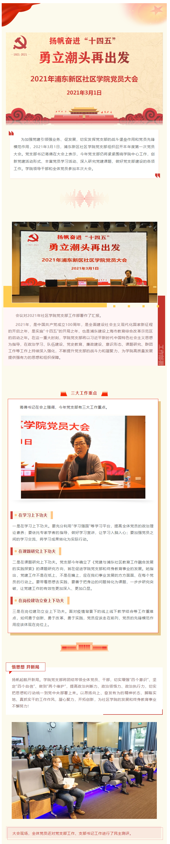 扬帆奋进“十四五” 勇立潮头再出发 ――浦东新区社区学院党支部组织召开党员大会