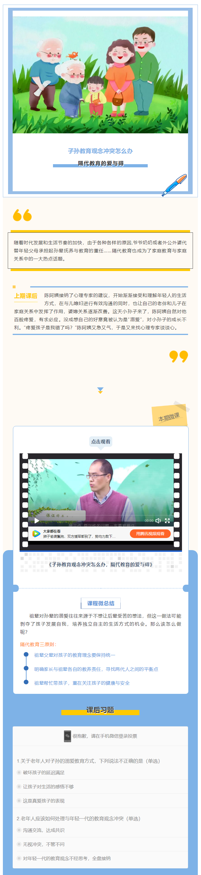 浦东新区社区心理健康教育系列微课第三节――子孙教育观念冲突的隔代教育